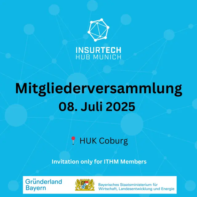 Members Assembly Juli 8, 2025 (Invitation Only) Event-Details Start: Dienstag, 8.7.2025 - 14:00 Ende: Dienstag, 8.7.2025 - 17:00 Standort: Coburg Veranstalter: InsurTech Hub Munich